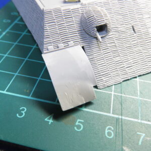 本当に平ぺったいパーツでダボ穴とかも無いので、しっかり接着するためパーツ・車体下部の両側を180番のペーパーでザラザラにしておきました。