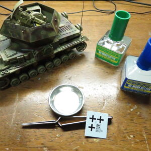 その際にホビーショップでドイツ戦車の3色迷彩であるダークイエロー・レッドブラウン・ダークグリーンのラッカー塗料(Mr.カラー)を購入。