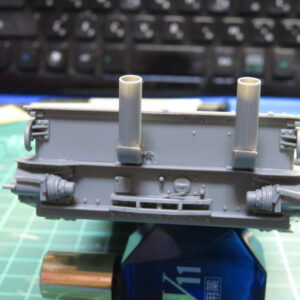 シュルツェンは非常に薄く出来ており、削ったりエッチングパーツと交換する必要はなさそうです。また、そのシュルツェンを固定する「支持架」も同様に薄いので折らないよう注意。