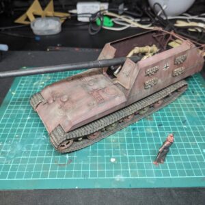 という具合に、側面装甲板に片側8枚の履板が取り付けられました。なんだかヤークトティーガーみたいな側面になりました。