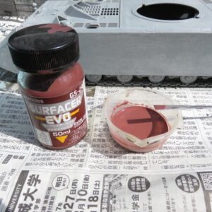 使用したサーフェイサーはGSIクレオスのMr.サーフェイサー1000。塗装前に下地処理として使うやつと同じ。