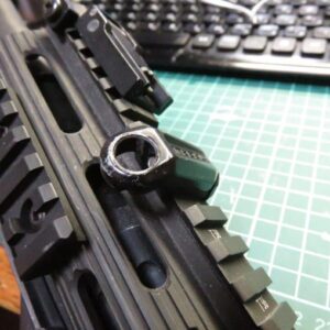 ちなみにQDスリングスイベルマウントは、フロント側は「RSA(レイル・スリング・アタッチメント)」、フレームエンド側は「TROYタイプ バトルスリングマウント」をそれぞれ使用しています。
