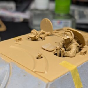 そしてマッドガードやブレーキ点検ハッチ、操縦手用ペリスコープの装甲バイザー、通信種用の車載機銃の円錐形装甲ブロック、そしてトラベリングクランプなどを取り付けます。
