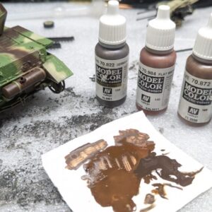 チッピングに使う塗料はファレフォのチョコレートブラウン。チューブに入ってるのでスティック無しでブリュッとパレットに出せるので楽ちん。
