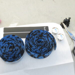 上の写真ではヘッドライトライトを持ってますが、ここで用意するのは自転車用マウント一式だけです。ライトは先に取り付けると作業がしんどいのでマウントを装着してから取り付けましょう。