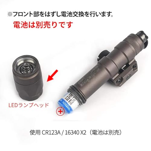 SUREFIREのM600C(M606C)スカウトライトのレプリカだが、高光量LEDと特殊形状バルブによって約330ルーメンという高い光量を実現。
