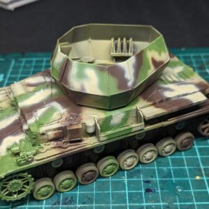これで細部の塗り分けも終わったので、残すは「ウェザリング」だけになりました。迷彩塗装は時間かかりましたが、そのあとの作業も一度(重たい腰を上げて)始めたらあっという間です。